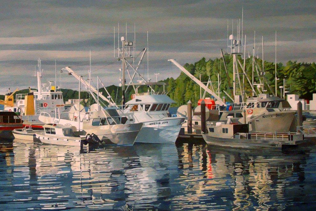 “Tugs and Fishboats” – Original Oil, 18″ x 22″ (SOLD)