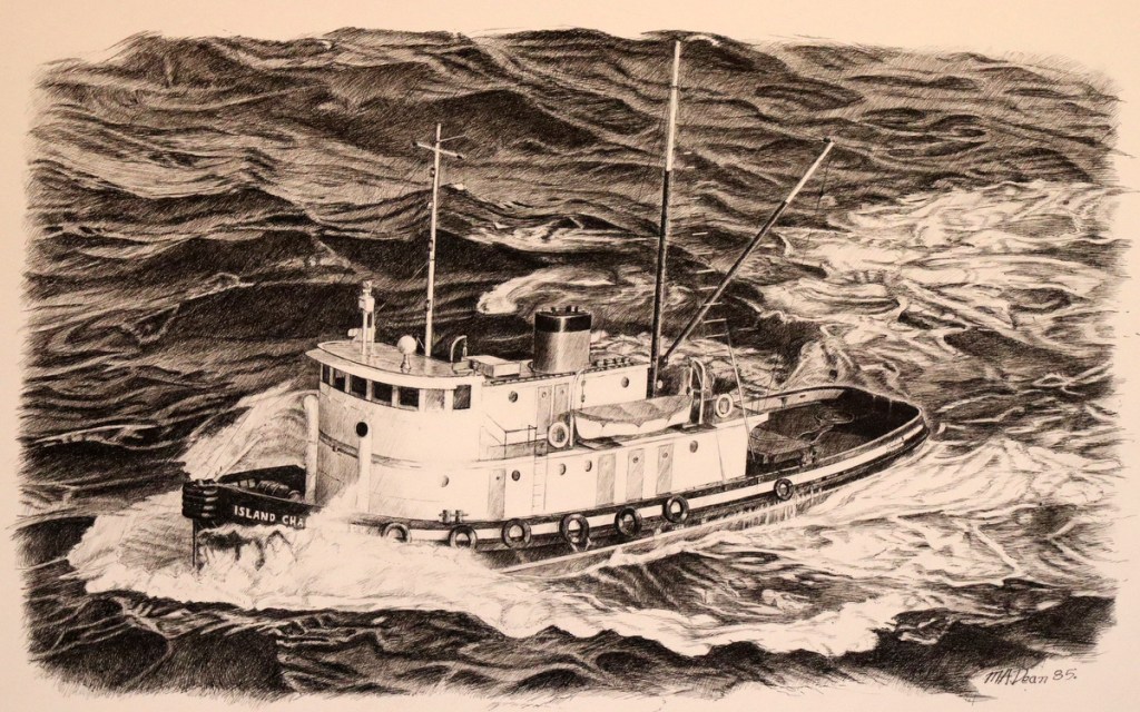 “Island Challenger“ – original pen and ink, 19″ x 12″, $825