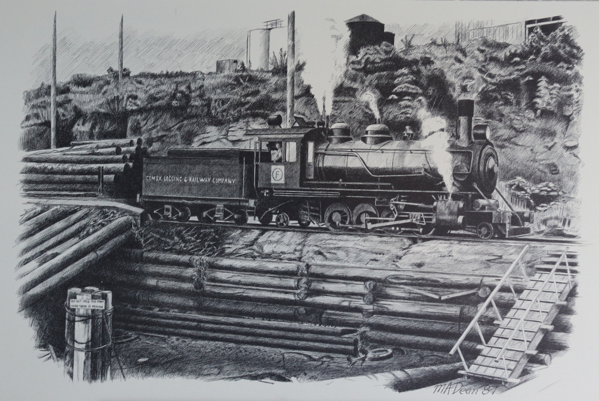 “Engine No. 11 at Ladysmith” – original pen and ink, 18″ x 12″ – SOLD