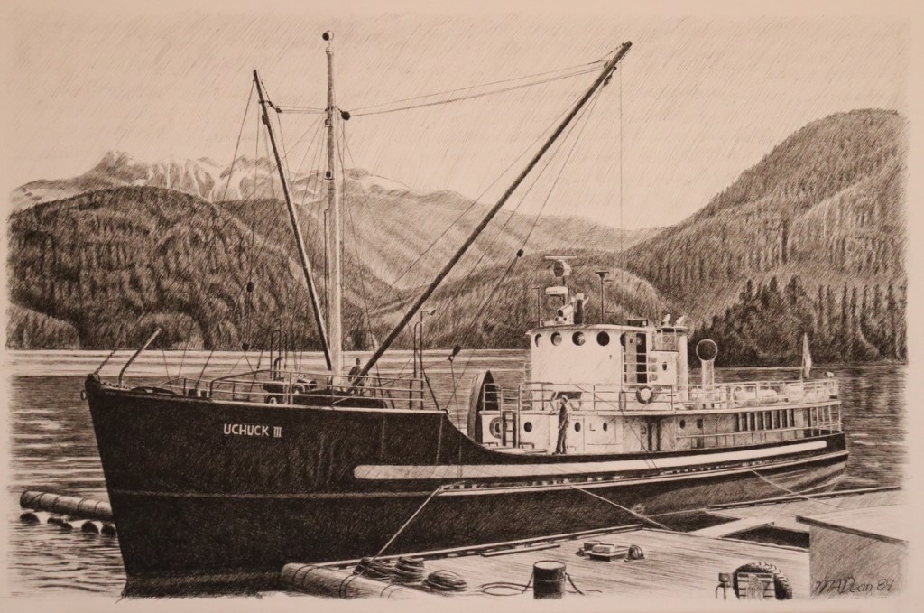“Uchuck III“ – original pen and ink, 18″ x 12″, $795